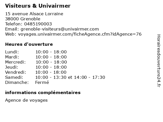 1 Univairmer (Distance: 0,40 km) 11 Rue Montorge, 38000 Grenoble agence, hôtel, location, séjour, univairmer, voyages 2 Hotel Kuoni (Distance: 0,02 km) 15 Avenue Alsace-Lorraine, 38000 Grenoble hotel, kuoni, restaurant, service 3 Kuoni - Travel Agency (Distance: 0,02 km) 15 Avenue Alsace-Lorraine, 38000 Grenoble agency, bureaux, kuoni, services, tourisme, travel 4 Tui Store (Distance: 0,15 km) 24 Avenue Alsace Lorraine, 38000 Grenoble agence, hôtel, location, store, séjour, tui, voyages 6 Univairmer (Distance: 35,72 km) 205 Avenue de la Gare, 38530 Pontcharra agence, hôtel, location, séjour, univairmer, voyages |