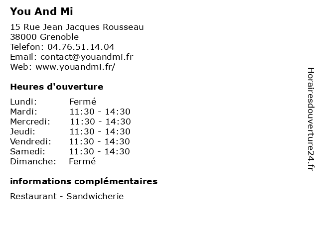 | Jeudi | 11:30-14:30 |