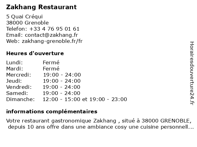 Votre restaurant gastronomique Zakhang , situé à 38000 GRENOBLE, depuis 10 ans offre dans une ambiance cosy une cuisine personnelle et créative ouverte sur le monde et vous propose une cuisine i...
