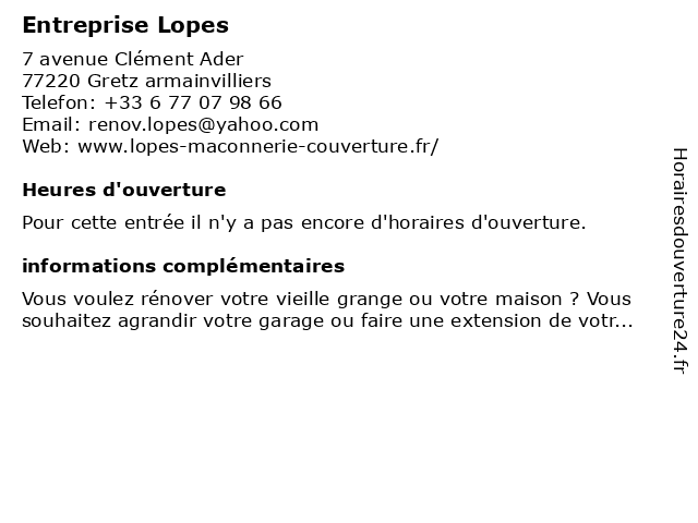 | Appeler Entreprise Lopes | |