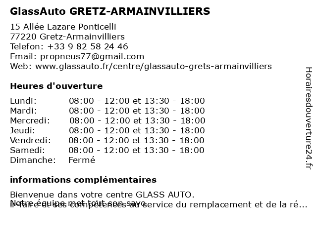 1 GlassAuto OZOIR LA FERRIERE (Distance: 5,41 km) 16 Rue Robert Schuman, 77330 Ozoir-la-Ferrière changement pare-brise, changement vitrage, ferriere, garage automobile, glassauto, la, optiques de phare, ozoir, remplacement pare-brise, remplacement vitrage, réparation pare-brise, réparation vitrage, rétroviseurs, toit ouvrant 2 GlassAuto SAINT THIBAULT DES VIGNES (Distance: 15,96 km) 14 Rue de la Noue Guimante, 77400 Saint-Thibault-des-Vignes changement pare-brise, changement vitrage, des, garage automobile, glassauto, optiques de phare, remplacement pare-brise, remplacement vitrage, réparation pare-brise, réparation vitrage, rétroviseurs, saint, thibault, toit ouvrant, vignes 3 Euromaster STC Pneus - Gretz-Armainvilliers (Distance: 1,18 km) 16 Impasse Saint-Eloi, 77220 GRETZ ARMANVILLIERS armainvilliers, batterie voiture, centre auto, changement pneu, changer pneu voiture, disque et frein, euromaster, garage, garage auto, garage automobile, garage pneu, garagiste, geometrie voiture, gretz, michelin pneus, ou acheter des essuie glace, parallélisme, pneu autour de moi, pneu montage, pneu pas cher autour de moi, pneu promo, pneus, pneus pas chers, recharge climatisation voiture, revision voiture, stc, vidange, vidange boite automatique, vidange voiture 4 Rapid Pare-Brise Ozoir (Distance: 4,44 km) 25 Rue François de Tessan, 77330 Ozoir-la-Ferrière automobile, brise, ferrière, la, ozoir, pare, pare-brise, rapid, remplacement, réparation, vitrage, voiture 5 France Pare-Brise OZOIR LA FERRIERE (Distance: 5,63 km) Rue Louis Armand, 77330 Ozoir-la-Ferrière brise, changement pare-brise, ferriere, fissure pare-brise, france, glace latérale, impact pare-brise, la, lunette arrière, ozoir, pare, pare-brise, remplacement pare-brise, réparation pare-brise, vitre latérale, vitre voiture 6 |