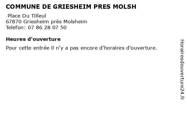| Appeler COMMUNE DE GRIESHEIM PRES MOLSH | |