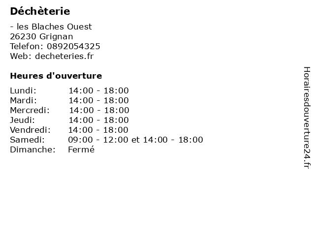 | Samedi | 09:00-12:00 et 14:00-18:00 |