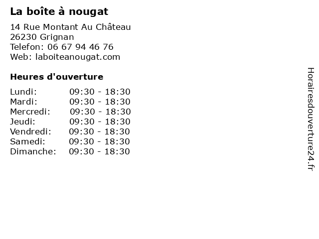 | Lundi | 09:30-18:30 |