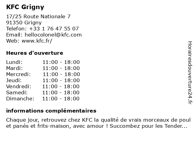 1 KFC Grigny (Distance: 0,00 km) 17/25 Route Nationale 7, 91350 Grigny burgers et buckets, frites, grigny, kfc, poulet et bucket, restaurant 2 KFC Drive (Distance: 7,80 km) . rue Jean Cocteau, 91100 Corbeil Essonnes boissons, burger, drive, fastfood, frites, kfc, restaurant 3 KFC Drive (Distance: 8,50 km) 20 rue de la Croix Saint Jacques, 91620 La Ville du Bois boissons, burger, drive, fastfood, frites, kfc, restaurant 4 KFC Drive (Distance: 13,41 km) . avenue des Bleuets, 94380 Bonneuil sur Marne boissons, burger, drive, fastfood, frites, kfc, restaurant 5 KFC Drive (Distance: 16,30 km) 6 Avenue Aristide Briand, 92220 Bagneux boissons, burger, drive, fastfood, frites, kfc, restaurant 6 |