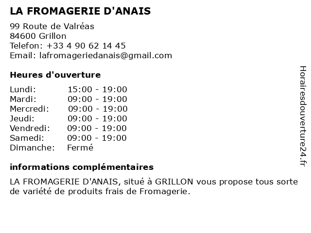 Termes de recherche pour LA FROMAGERIE D'ANAIS:la, fromagerie, d'anais |