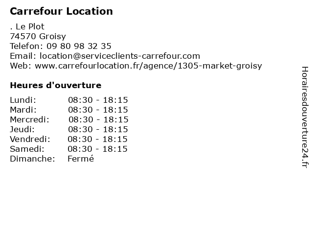 1 Carrefour Location (Distance: 6,38 km) 273 Route Imperiale, 74370 Saint-Martin-Bellevue agence, carrefour, location, utilitaires, véhicules 2 Carrefour Location (Distance: 6,75 km) 629 Route D’Annecy, 74350 Cruseilles agence, carrefour, location, utilitaires, véhicules 3 Carrefour Location (Distance: 10,19 km) 134 Avenue de Genève, 74000 Annecy accessoires, beaute&sante, cafe, carrefour, chaussures, enfants, fleurs, location, mode femmes, mode hommes, optique, restaurant, service, sport 4 Carrefour Location (Distance: 12,47 km) 80 Route De La Roche, 74800 Amancy agence, carrefour, location, utilitaires, véhicules 5 Carrefour Location (Distance: 15,39 km) 210 Route De Bersat, 74930 Reignier-Ésery agence, carrefour, location, utilitaires, véhicules 6 Carrefour Location (Distance: 17,51 km) - Lieudit Les Grands Pres, 74320 Sevrier agence, carrefour, location, utilitaires, véhicules |