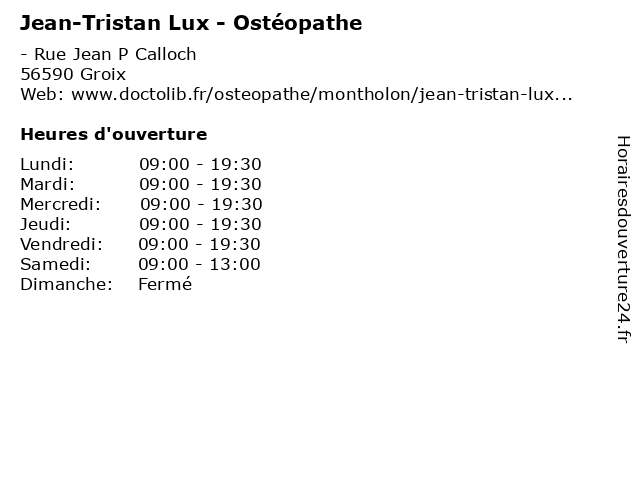 | Lundi | 09:00-19:30 |