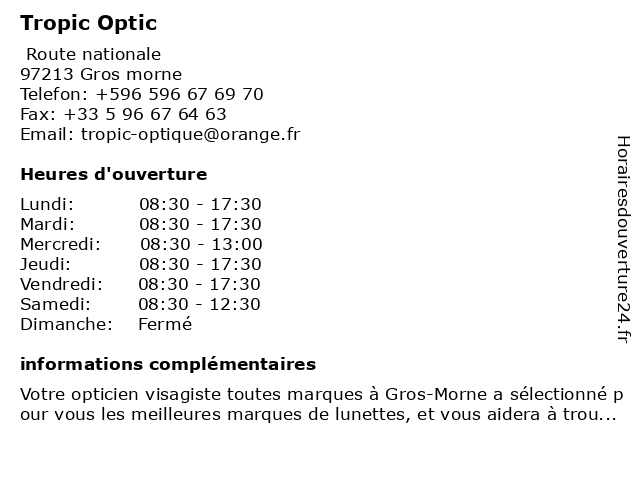 1 Opticien Optic 2000 La Trinité - Lunettes, lunettes de soleil, lentilles (Distance: 5,53 km) 13 rue Victor Hugo, 97220 LA TRINITE 2000, de, la, lentilles, lentilles de contact, lunettes, lunettes de soleil, lunettes de vue, optic, optic2000, opticien, opticien optic2000, ray-ban, rayban, soleil, trinité 2 Optic 2000 - Opticien Sainte-Marie (Distance: 7,99 km) Chemin Rural de l'Alliance, 97230 Sainte-Marie 2000, lentilles de contact, lunettes de soleil, lunettes de vue, marie, optic, optic2000, opticien, opticien optic2000, ray-ban, rayban, sainte 4 Optic 2000 - Opticien Fort De France (Distance: 11,63 km) Rocade, 97200 Fort-de-France 2000, de, fort, france, lentilles de contact, lunettes de soleil, lunettes de vue, optic, optic2000, opticien, opticien optic2000, ray-ban, rayban 5 Opticien Optic 2000 Fort-de-France - Lunettes, lunettes de soleil, lentilles (Distance: 13,44 km) 50-52 rue Victor Schoelcher, 97200 FORT-DE-FRANCE 2000, de, fort, france, lentilles, lentilles de contact, lunettes, lunettes de soleil, lunettes de vue, optic, optic2000, opticien, opticien optic2000, ray-ban, rayban, soleil 6 |