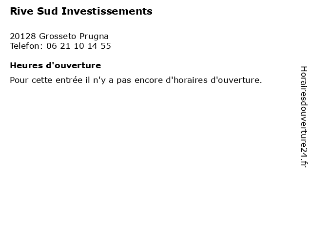 1 Rive Sud Investissements (Distance: 2,29 km) 3181 Jard des Marines de Porticcio, 20166 Grosseto-Prugna investissements, rive, sud 4 Laboratoire Rive Sud (Distance: 2,14 km) s/n Les Marines de Porticcio II, 20166 Porticcio laboratoire, rive, services, sud 5 Rive Sud Maree (Distance: 2,25 km) Les Marines Ii, 20128 Grosseto Prugna boucheries, maree, poissonneries, rive 6 Rive Sud Clim (Distance: 4,80 km) 6 Résidence Tinerella, 20166 Porticcio clim, climatisation, installation, rive, service, sud |