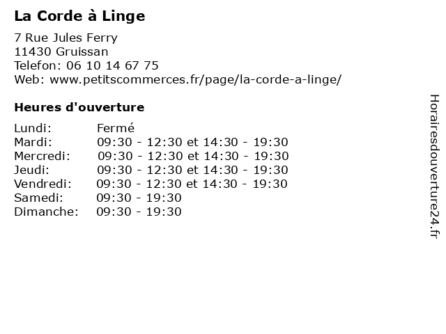 | Mardi | 09:30-12:30 et 14:30-19:30 |