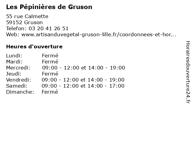 | Lundi | Fermé |