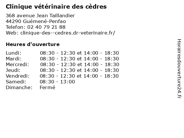 | Lundi | 08:30-12:30 et 14:00-18:30 |