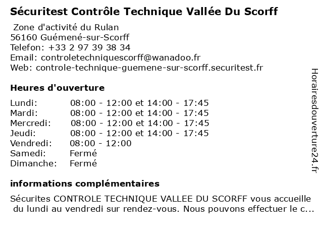 | Mardi | 08:00-12:00 et 14:00-17:45 |