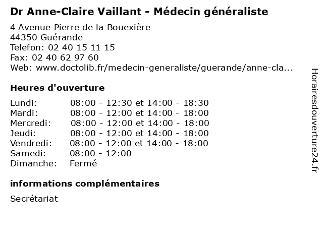 | Lundi | 08:00-12:30 et 14:00-18:30 |