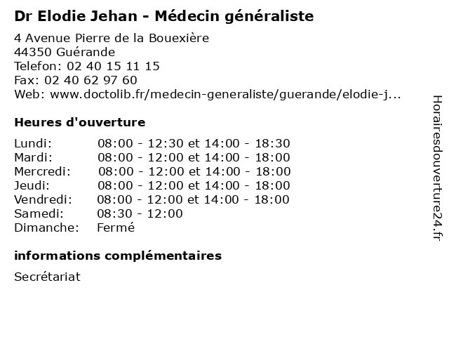 | Lundi | 08:00-12:30 et 14:00-18:30 |