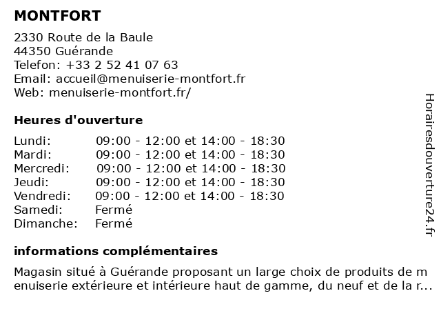 | Lundi | 09:00-12:00 et 14:00-18:30 |