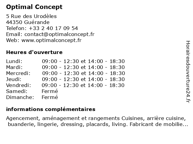 | Lundi | 09:00-12:30 et 14:00-18:30 |