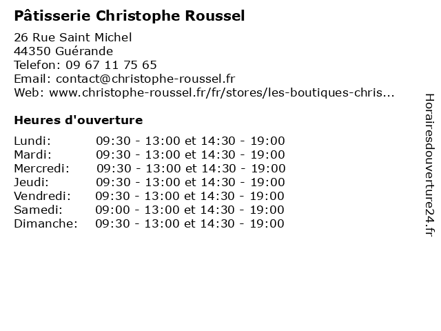 | Mardi | 09:30-13:00 et 14:30-19:00 |