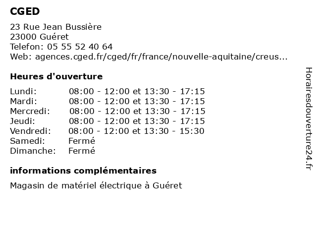 | Mercredi | 08:00-12:00 et 13:30-17:15 |