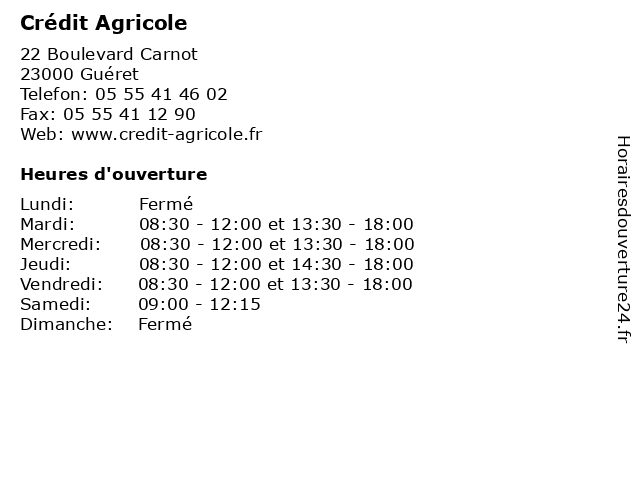 1 Crédit Agricole (Distance: 1,07 km) 48 Avenue du Berry, 23000 Guéret agence, agricole, assurance, bancaire, banque, crédit 2 Crédit Agricole (Distance: 9,52 km) - Place de l'Eglise, 23320 Saint-Vaury agence, agricole, assurance, bancaire, banque, crédit 3 Crédit Agricole (Distance: 17,28 km) - Rue du Presbytère, 23240 Le Grand Bourg agence, agricole, assurance, bancaire, banque, crédit 4 Crédit Agricole (Distance: 17,53 km) 2 Avenue du Château, 23220 Bonnat agence, agricole, assurance, bancaire, banque, crédit 5 Mutualité sociale agricole (MSA) Nouvelle-Aquitaine (Distance: 1,13 km) 28 Avenue d'Auvergne, 23000 Guéret accueil, agricole, aquitaine, information, msa, mutualité, mutuelle, nouvelle, santé, sociale 6 Crédit Agricole Centre France (Distance: 16,49 km) 1 Grande Rue, 23150 Ahun agence, agricole, assurance, bancaire, banque, centre, crédit, france |