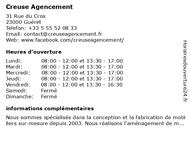 | Lundi | 08:00-12:00 et 13:30-17:00 |