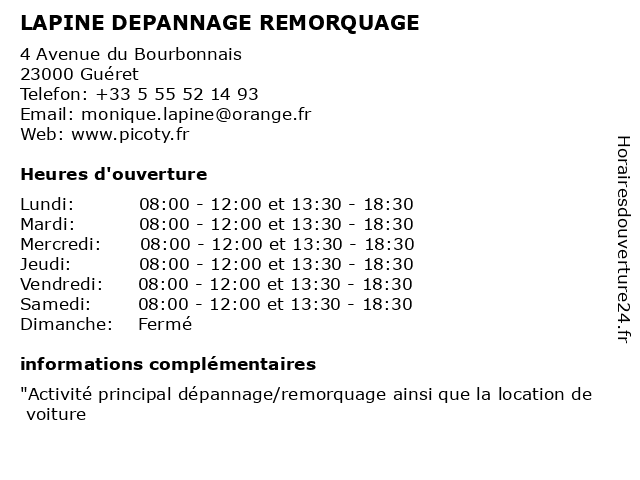 | Lundi | 08:00-12:00 et 13:30-18:30 |