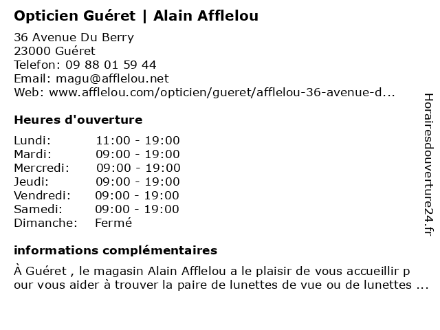 1 Opticien Générale d'Optique (Distance: 0,11 km) 36/40 Avenue du Berry, 23000 Guéret d'optique, générale, opticien 2 Opticien GUÉRET Optical Center (Distance: 0,15 km) 8 Avenue du Berry, 23000 Guéret center, guéret, optical, opticien 3 Opticien Guéret - Optic 2000 (Distance: 0,29 km) 3 Avenue de l'Europe, 23000 Guéret 2000, guéret, lentilles de contact, lunettes de soleil, lunettes de vue, optic, optic2000, opticien, opticien optic2000, ray-ban, rayban 4 Dr Alain Eglizeaud - Chirurgien maxillo-facial et stomatologue (Distance: 0,38 km) 57 avenue du Berry, 23000 Gueret alain, chirurgien, consultation, docteur, dr, eglizeaud, et, facial, maxillo, med, médecin, médecine, stomatologue, traitement 5 Dr Alain Razanamahery - Pneumologue (Distance: 0,78 km) 34 Avenue Manouvrier, 23000 Guéret alain, allergologie, autre, consultation, docteur, dr, pneumologie, pneumologue, razanamahery, santé, somnologie 6 Opticien Krys (Distance: 0,96 km) 29 Place Bonnyaud, 23000 Guéret krys, magasin de lentilles correctrices, magasin de lunettes de soleil, magasin d’accessoires de mode, opticien, optométrie |