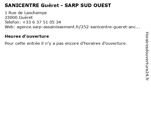 | Appeler SANICENTRE Guéret - SARP SUD OUEST | |