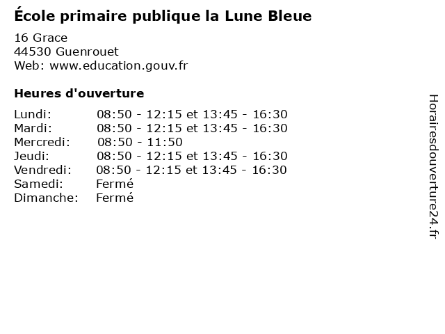 | Mardi | 08:50-12:15 et 13:45-16:30 |