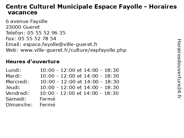 Termes de recherche pour Centre Culturel Municipale Espace Fayolle - Horaires vacances:espace, horaires, centre, diffusion, vacances, culturel, municipale, animation, fayolle, enseignement, création., espace fayolle |