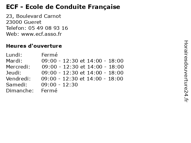 | Mardi | 09:00-12:30 et 14:00-18:00 |