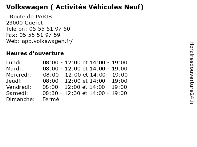 | Samedi | 08:30-12:30 et 14:00-19:00 |