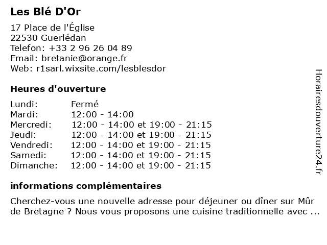 2 La Plume d'Or (Distance: 17,42 km) 1 place de l'Eglise, 22600 Loudéac d'or, enseignes, entreprises, impression, imprimerie, la, papeterie, plume, projet 3 Boulangerie Pâtisserie - Fleur de Blé (Distance: 35,30 km) 9bis rue de la Fontaine Morin, 22440 Ploufragan alimentation, baguette, blé, boulangerie, commerce, de, fleur, gâteaux, pain, ploufragan, pâtisserie 4 Casino Cafétéria - Coeur de Blé et Bar (Distance: 37,90 km) n/a Boulevard De L'Atlantique, 22000 Saint Brieuc bar, ble, blé, cafeteria, cafétéria, casino, coeur, de, et, foods, kids, restaurants 5 Le Blé en Herbe (Distance: 38,58 km) 13 rue Saint-Gouéno, 22000 Saint Brieuc accessoires, blé, en, herbe, jeux, jouets, le, loisirs, pelluches 6 École Primaire Publique Le Blé En Herbe - Saint-Vran (Distance: 40,52 km) - Le Bourg, 22230 Saint-Vran ble, blé, ecole, education, en, herbe, le, maternelle, primaire, publique, saint, services, vran, école |