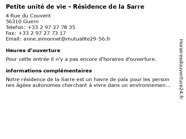 | Appeler Petite unité de vie - Résidence de la Sarre | |