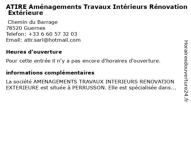 | Appeler ATIRE Aménagements Travaux Intérieurs Rénovation Extérieure | |