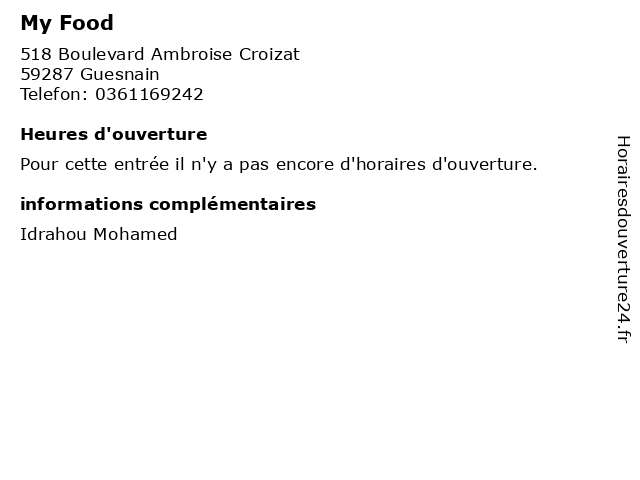 1 HOME FOOD (Distance: 0,46 km) 39 Boulevard Ambroise Croizat, 59287 Guesnain burger, desserts, food, glace, hamburger, home, home food, milkshakes, salade, sandwich, tacos, texmex, tiramisu 2 City Food (Distance: 1,89 km) 2 c Rue De l Egalite, 59187 Dechy city, essaleh, food, mohamed, restaurants 6 Chic'n Food (Distance: 13,59 km) 130c Rue Emile Zola, 62141 Evin-Malmaison café, chic, chic'n, food, restaurants |