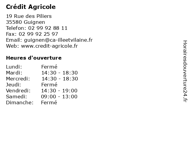 1 Crédit Agricole (Distance: 9,06 km) - Place de la Mairie, 35890 Laillé agence, agricole, assurance, bancaire, banque, crédit 2 Crédit Agricole (Distance: 10,96 km) 44 Avenue du Port, 35480 Guipry-Messac agence, agricole, assurance, bancaire, banque, crédit 3 Crédit Agricole (Distance: 14,34 km) 1 Avenue Jules Tricault, 35170 Bruz agence, agricole, assurance, bancaire, banque, crédit 4 Crédit Agricole (Distance: 14,81 km) - Place Louis Petri, 35320 Crévin agence, agricole, assurance, banque, credit, crédit, mutuel, pyrenees 5 Crédit Agricole (Distance: 15,29 km) 53 Rue de Montfort, 35310 Bréal-sous-Montfort agence, agricole, assurance, bancaire, banque, crédit 6 Crédit Agricole (Distance: 15,68 km) - Avenue de la Mairie, 35310 Chavagne agence, agricole, assurance, bancaire, banque, crédit  |