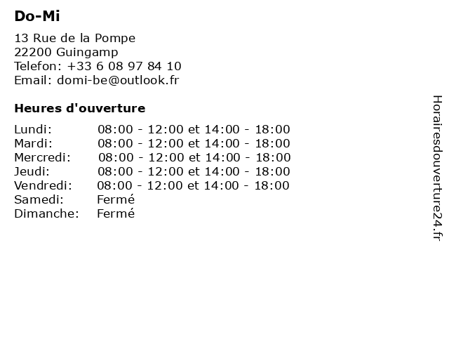 | Mardi | 08:00-12:00 et 14:00-18:00 |
