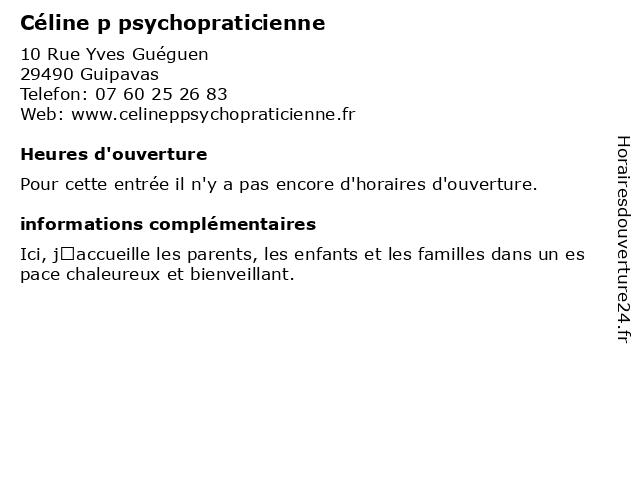 1 Maître Céline Corbe - Avocate (Distance: 5,19 km) 55 rue de Paris, 29490 Brest avocate, avocats, civils, corbe, céline, droits, juridiques, maître 2 Dr Céline Descombes - Médecin généraliste (Distance: 7,82 km) 5 Rue Colbert, 29200 Brest celine, consultation, céline, descombes, docteur, dr, généraliste, med, médecin, traitement 4 Céline Lapie - Psychologue (Distance: 10,11 km) 256 Rue Francis Thomas, 29200 Brest céline, lapie, psy, psychiatre, psychologue, sante, soins 5 6 Céline Quelen - Sage-femme (Distance: 37,44 km) 14 Résidence des Chênes, 29420 Plouénan céline, femme, grossesse, gynécologique, quelen, sage, sage-femme, suivi  |