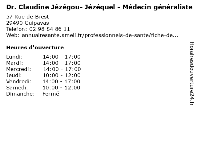 Termes de recherche pour Dr. Claudine Jézégou- Jézéquel - Médecin généraliste:en, générale, medecine, santé, domicile, généraliste, docteur, médecin, dr., jézéquel, consultation, claudine, visite, jezegou |