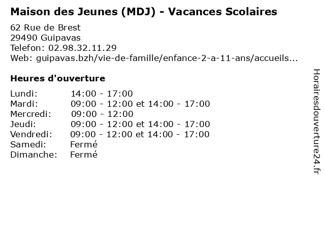 | Mardi | 09:00-12:00 et 14:00-17:00 |