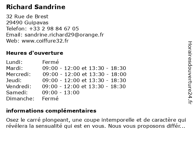 | Vendredi | 09:00-12:00 et 13:30-18:30 |
