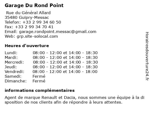 | Lundi | 08:00-12:00 et 14:00-18:30 |
