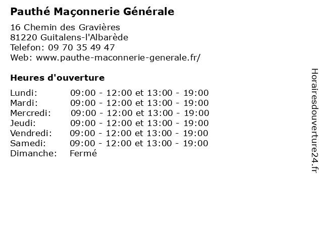 | Samedi | 09:00-12:00 et 13:00-19:00 |