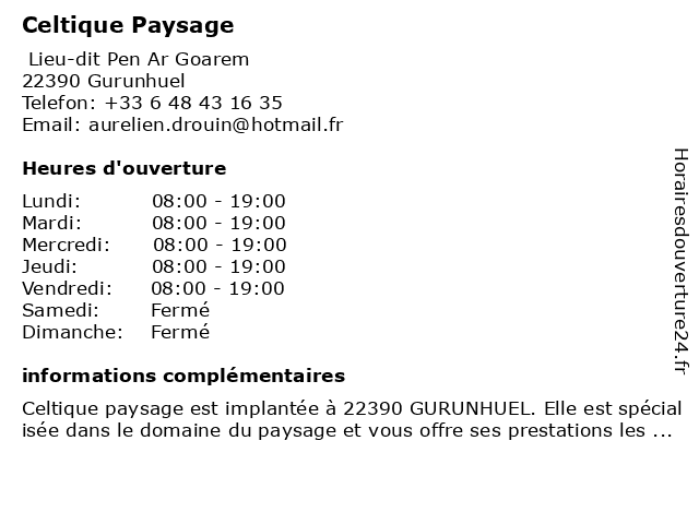 3 Gardien Paysage (Distance: 9,93 km) 6 ZA de Kerbol, 22810 Belle-Isle-en-Terre entreprise, gardien, guillaume, paysage, terrassement 4 Tilly Paysage et Pépinière (Distance: 11,65 km) 2 Poul Vran, 22200 Plouisy et, paysage, pépinière, tilly 6 |
