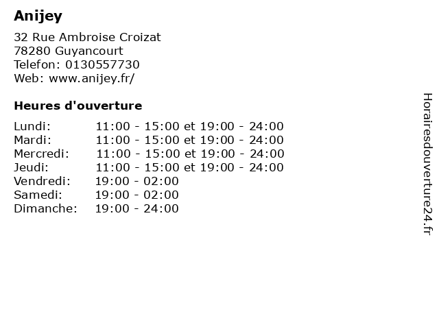 Jeudi | 11:00-15:00 et 19:00-24:00 |
