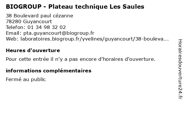 | Appeler BIOGROUP - Plateau technique Les Saules | |