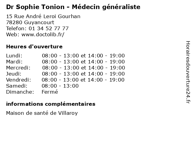 | Lundi | 08:00-13:00 et 14:00-19:00 |