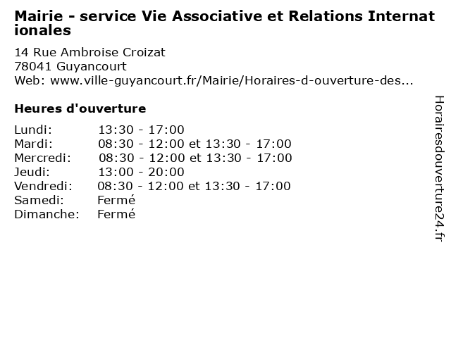 | Mardi | 08:30-12:00 et 13:30-17:00 |